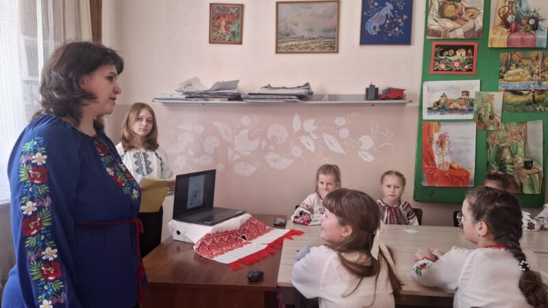 Керівник гуртка Наталія Ткачук ознайомила вихованців із регіональними особливостями вишивки та розкрила зміст символів і орнаментів, що з покоління в покоління передаються як зашифровані послання — про родину, добробут, захист і любов до рідної землі.